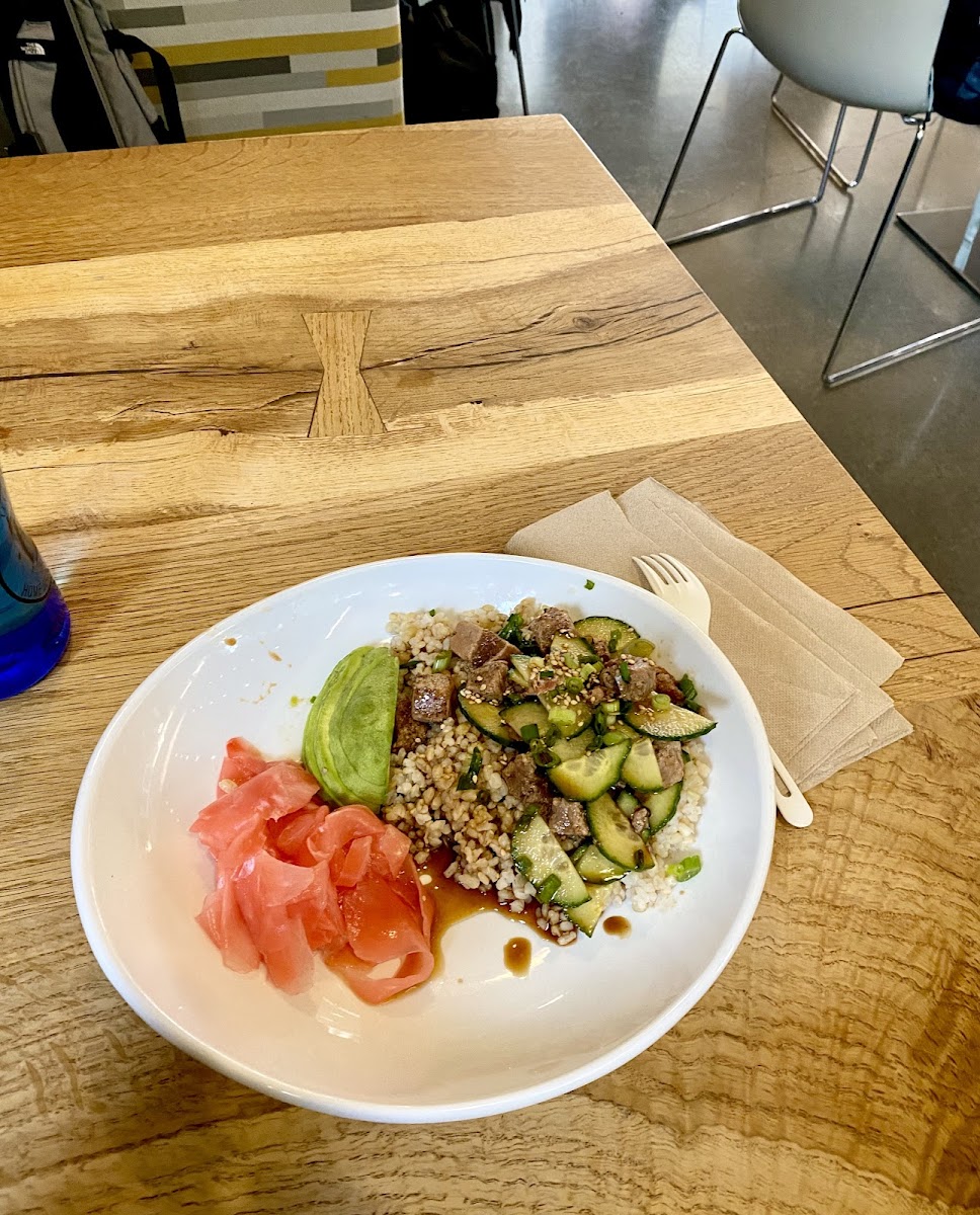 Warm staff and cozy space for a fresh morning First time having apple cider as hot drink and it taste amazing Their tuna poke tasted really good but it’s relatively pricey with the small portions (almost $19) # Hot apple cider # Ahi Tuna Poke